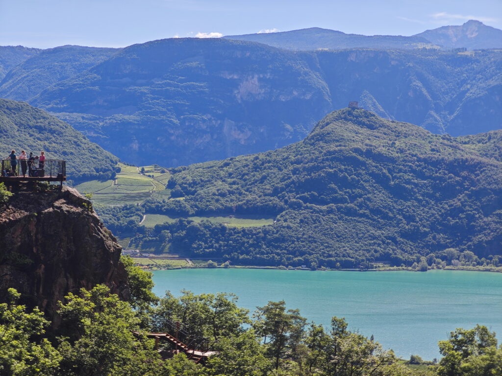 Lungo il percorso, passerai per alcune moderne scale in Corten acciaio che ti porteranno a un magnifico punto panoramico. Qui, avrai una vista spettacolare sul Lago di Caldaro. Continua poi attraverso una foresta che ricorda un piccolo „giungla“, dove i ponti in Corten acciaio ti permetteranno di attraversare il Rastenbach e ammirare le sue pozze d’acqua. In questa parte della gola la vegetazione è molto densa, ben diversa dalla parte inferiore.