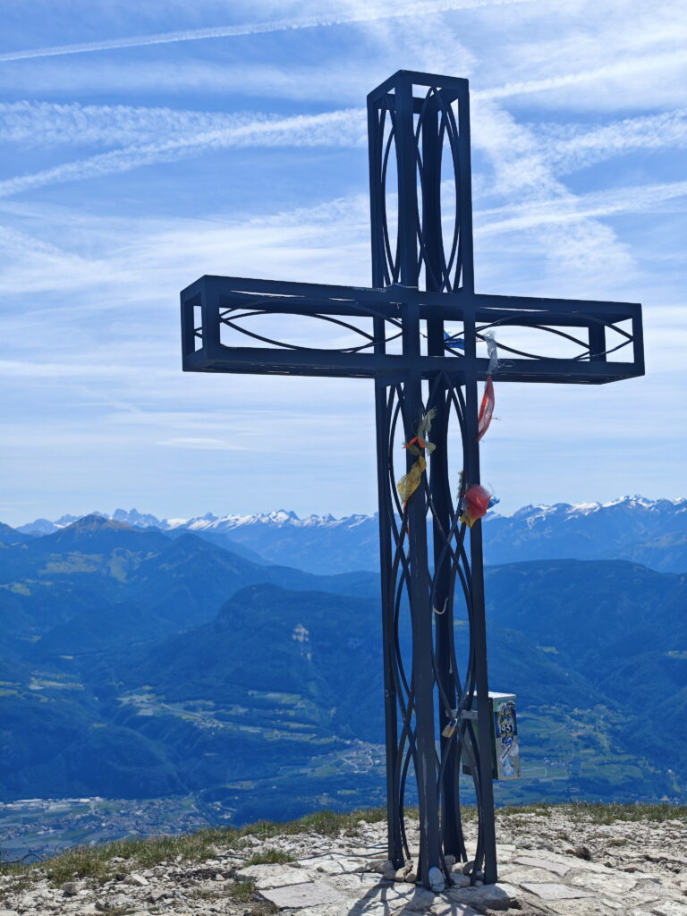- Im Osten: Der Blick schweift über das gesamte Etschtal, die Dörfer der Südtiroler Weinstraße und das Unterland. Bei klarer Sicht sind die markanten Gipfel der Dolomiten, wie Rosengarten und Schlern, zu erkennen.